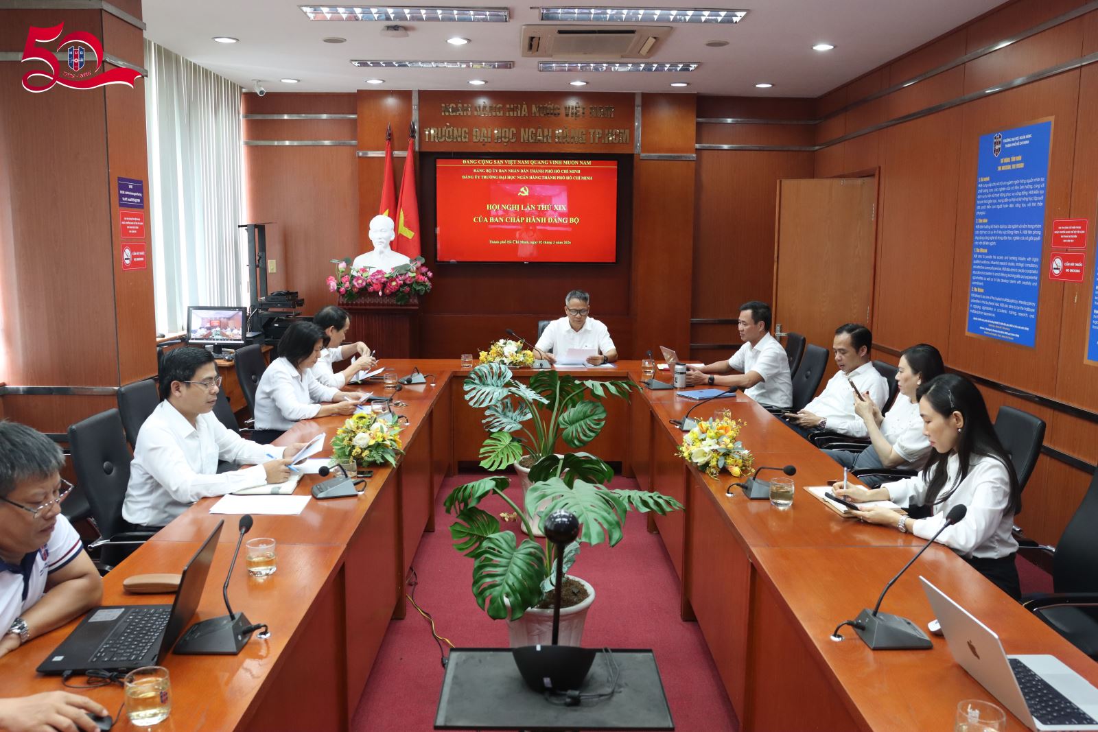 Chiều ngày 02 tháng 03 năm 2026, PGS. TS. Đoàn Thanh Hà – Bí thư Đảng ủy, Chủ tịch Hội đồng trường chủ trì Hội nghị định kỳ lần thứ XIX của Ban Chấp hành Đảng bộ Trường Đại học Ngân hàng Thành phố Hồ Chí Minh. Tham dự Hội nghị có các đồng chí Ủy viên Ban Chấp hành Đảng bộ Trường nhiệm kỳ 2025 – 2030.